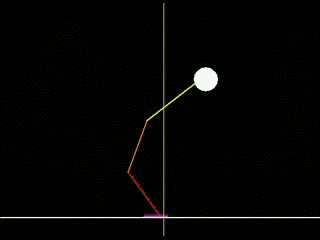 I due filmati che seguono mostrano le prestazioni del sistema prima e dopo l’apprendimento. La prestazione nel filmato prima dell’apprendimento appare migliore di quanto sia in realtà, poiché le cadute non vengono mostrate fino in fondo: appena il programma si accorge che il baricentro è uscito fuori dalla base d’appoggio (e quindi l’individuo cadrà), fa ripartire l’individuo da una posizione casuale ma con il baricentro entro la base d’appoggio.